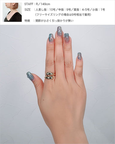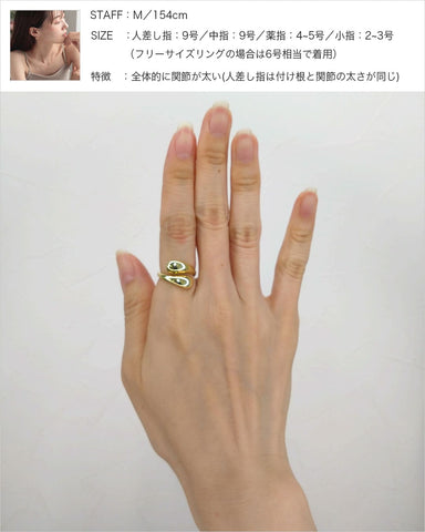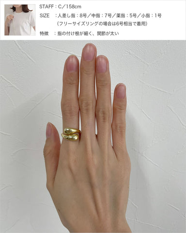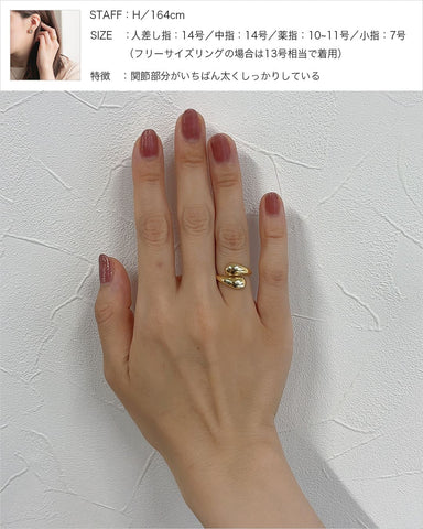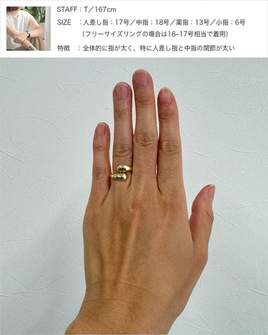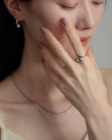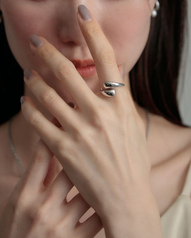 ドロップ(雫型)が指をくるりと包み込むデザインが愛らしいアイテム。
