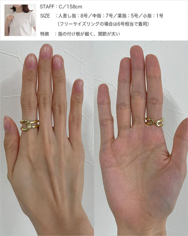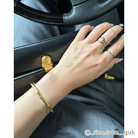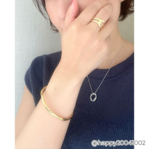 直線的な面と、やわらかなカーブを描く面の2つの表情があり、着ける向きによって印象を変えて楽しめます。