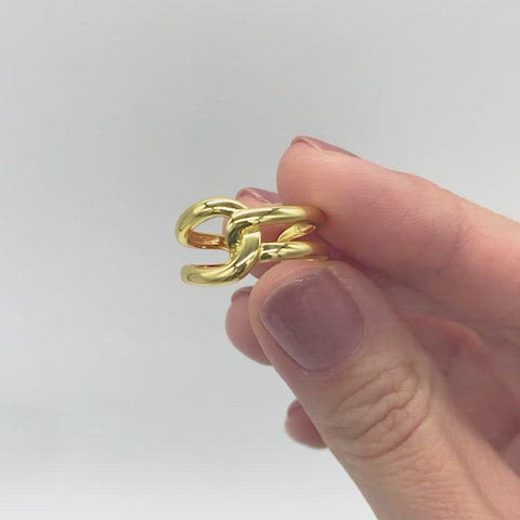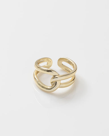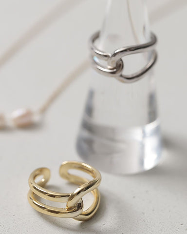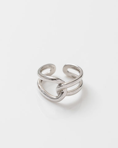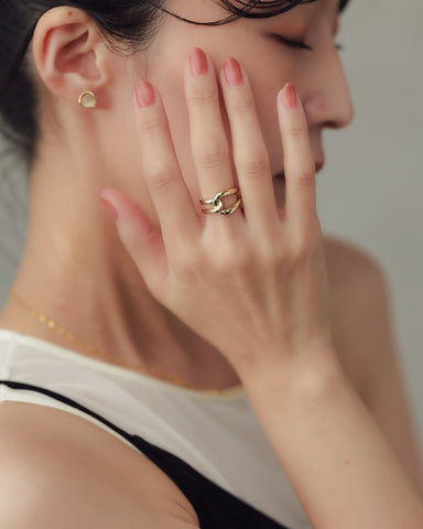 2本のラインをクロスさせたニュアンスのあるデザインが、シンプルながらも存在感のあるリング。