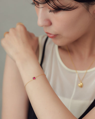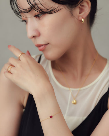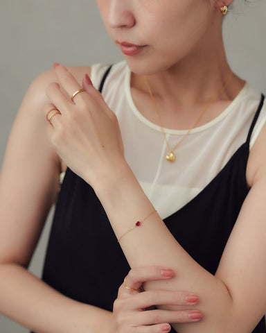 華奢なチェーンに、深みのある赤のハートストーンがきらり。