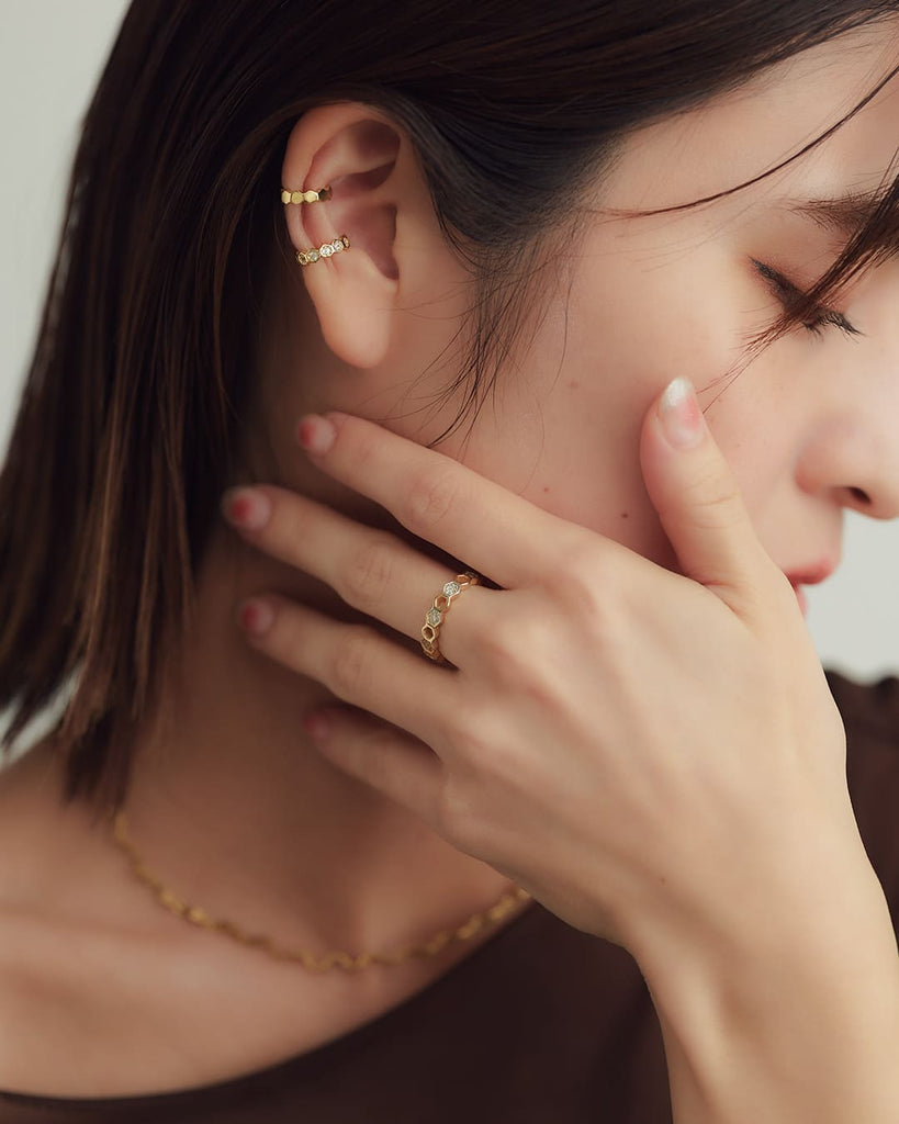 蜂の巣をイメージしたデザインが可愛いイヤーカフ。