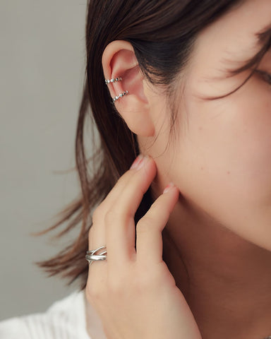 小さな星をたくさん並べて1本のラインにしたイヤーカフ。