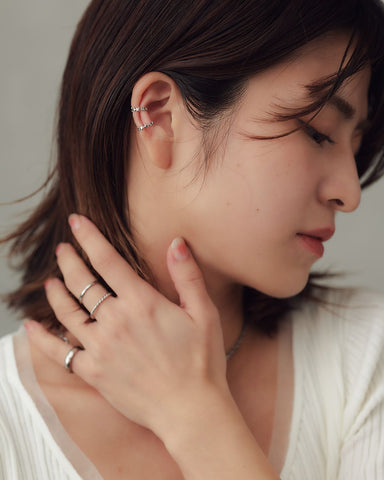 非常に小ぶりのため、遠目ではシンプルなイヤーカフに見えますが、近くに寄ると星だとわかる遊び心のあるアイテムです。