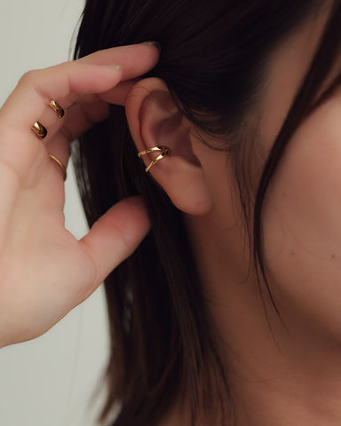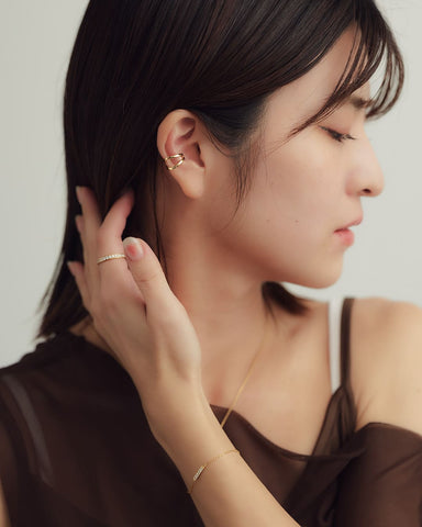 耳元にさりげないニュアンスをプラスする、ダブルラインデザインのミニイヤーカフ。