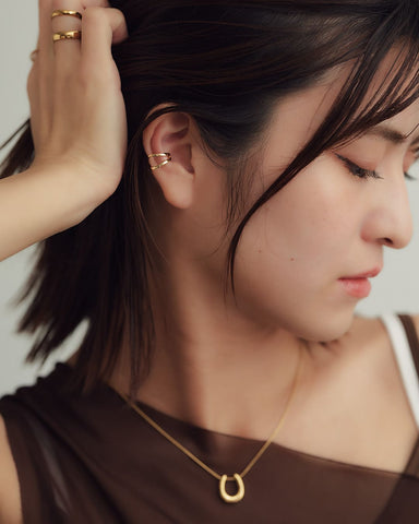 メタリックな艶が上品で、光の加減によってきらりと輝く美しい仕上がり。単体使いはもちろん、他のイヤーカフやピアスとのレイヤードスタイルもおすすめ。