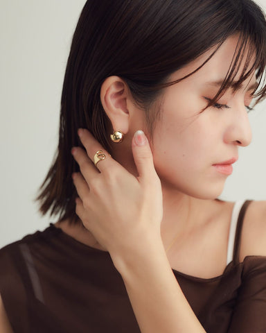 直径約1.5cmのモチーフがしっかりと存在感を放ち、コーディネートのアクセントに◎