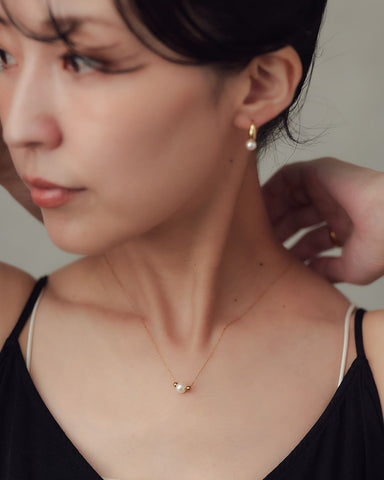 照りの良いパールが肌に自然となじみ、ゴールドパーツが輪郭を引き締めるアクセントに。
