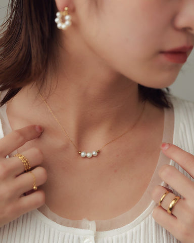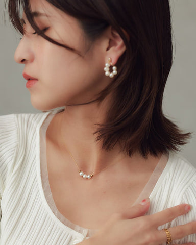 小ぶりなパールが並ぶデザインで、さりげないけれど存在感のあるアクセサリー。