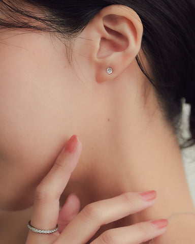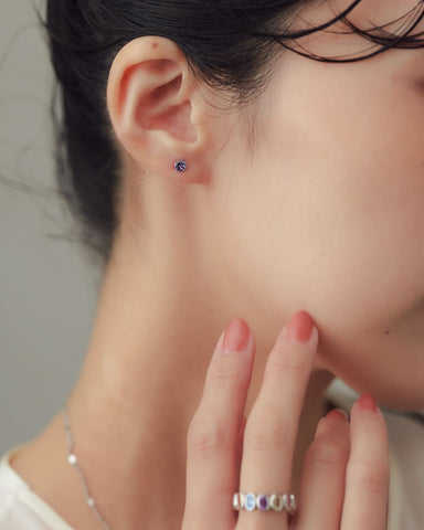 誕生石をモチーフにしたジルコニアを1粒あしらったシンプルなピアス。