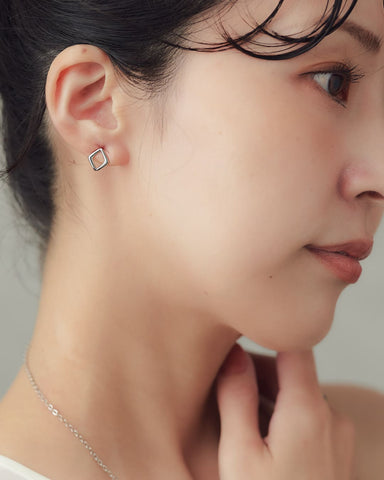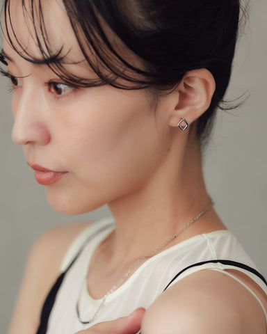 なめらかなラインで描かれた、ひし形(ロンバス)フォルムのピアス。
