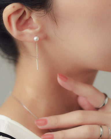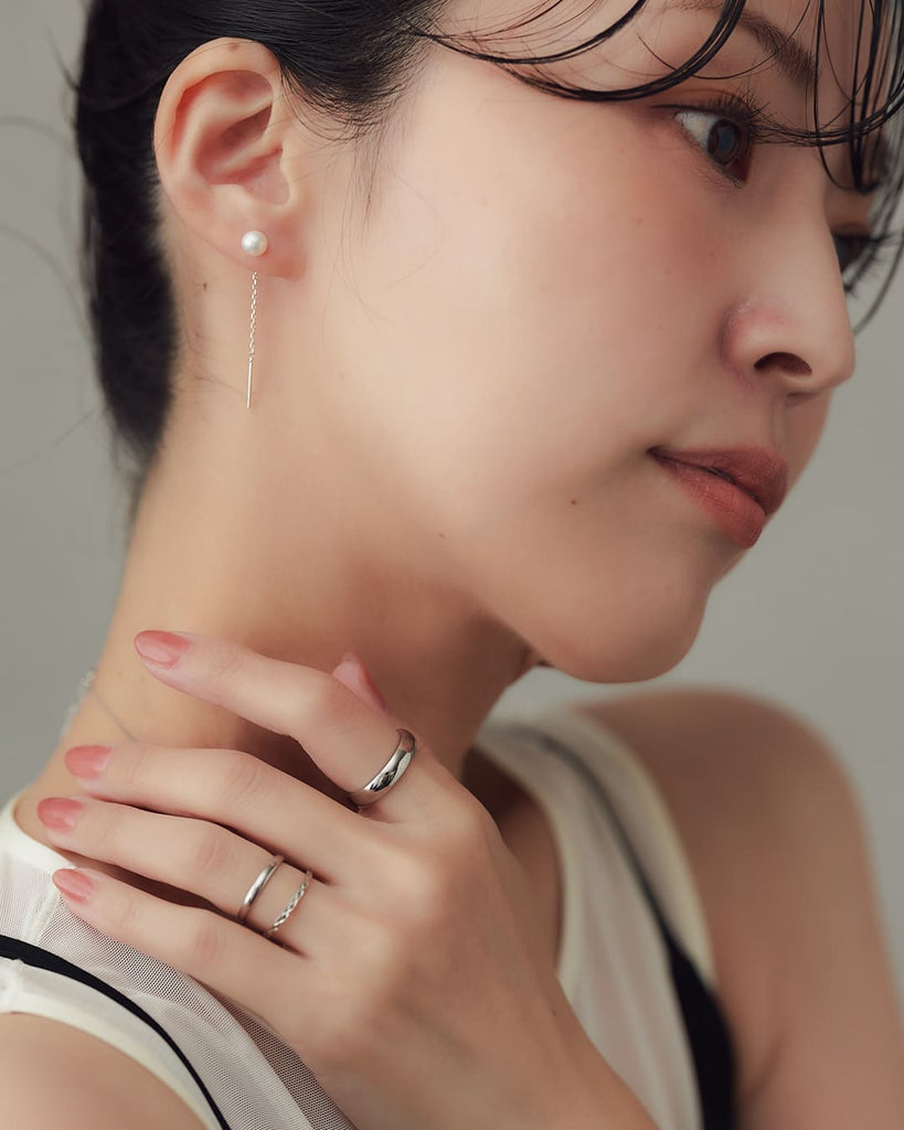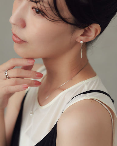 キャッチいらずでそのままスッと通せる手軽さが魅力ながら、繊細なチェーンが動くたびに視線を引きつけます。