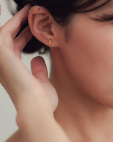 ミニマルな美しさが光る、カットレクタングルプチピアス。