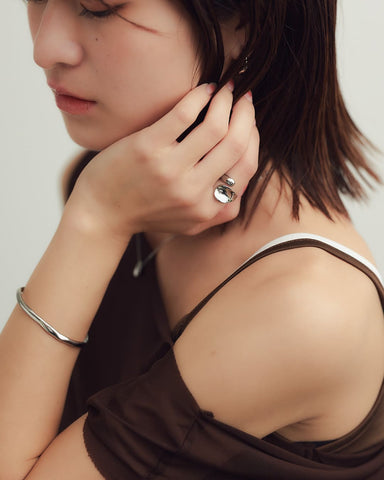 モチーフ部分の地金面が広いため、リングの位置を少しずらすだけでも表情が変わり、気分やコーデに合わせたアレンジが楽しめます。