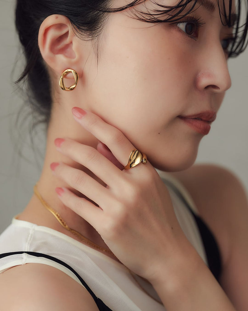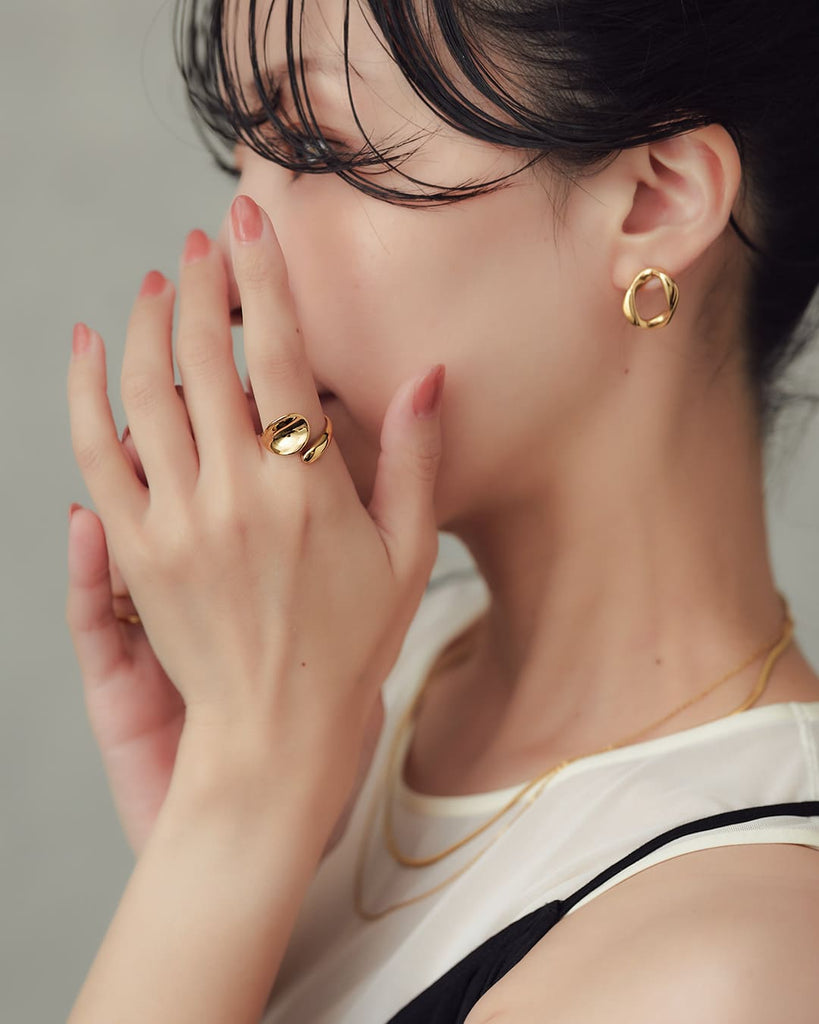 リングを付ける事が無く過ごしていたのですが、こちらのサイトでピアスを購入した際、リングも気になり調整可能と言う事で購入。存在感はありますがシンプルな洋服にも合うデザインがとても気に入りました。