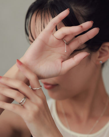 シルバーの中でも明るく澄んだ色合いが、繊細で清楚な印象を放つ、ホワイトシルバーカラーのリング。手元をパッと華やかに見せてくれます。