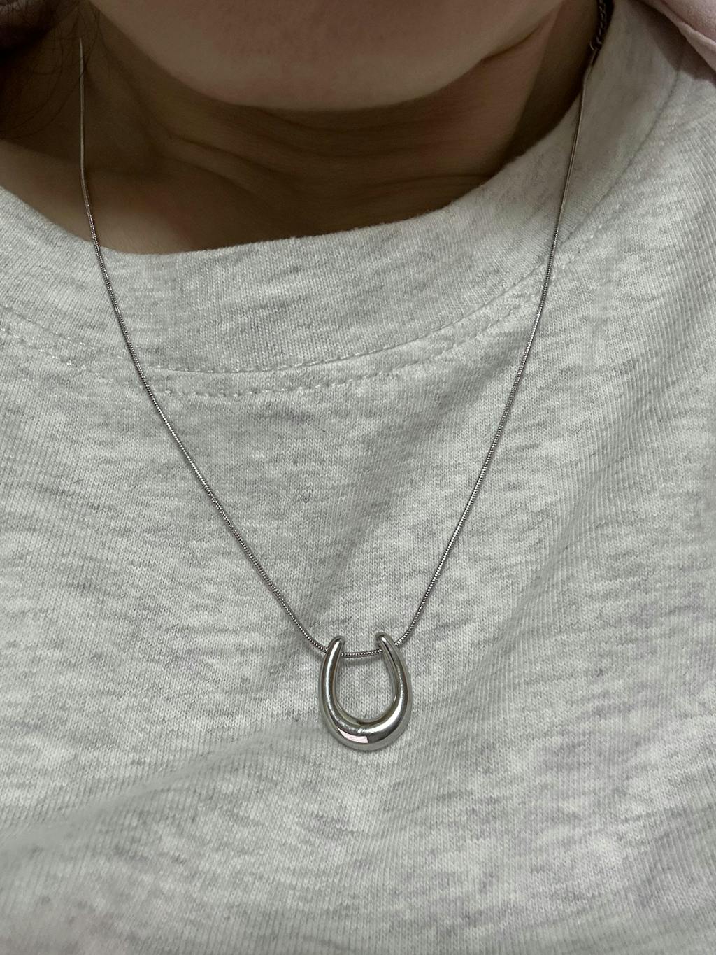シンプルでありながら存在感のあるデザインが特徴のUモチーフネックレス。
