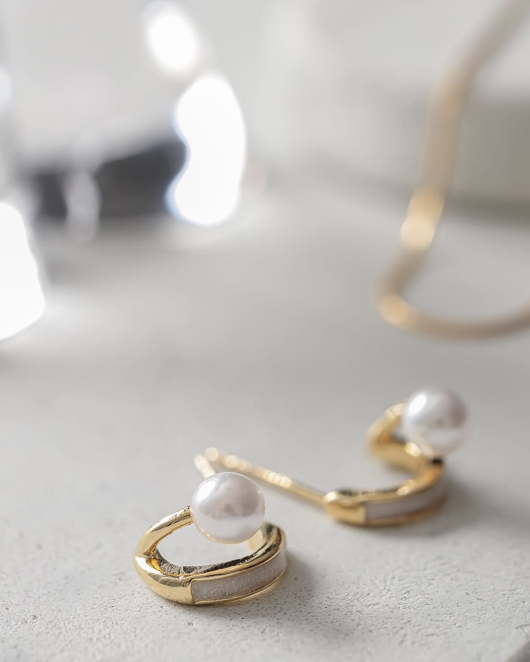 【S925/18KGP】淡水バロックパール4連フープピアス【mina9月号掲載】
