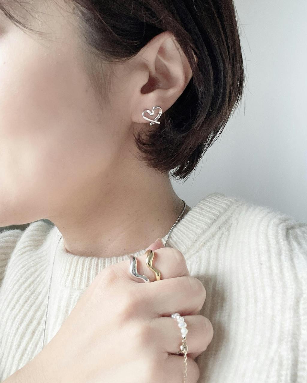 手書きのようなハートマークが可愛いノンホールピアス(イヤリング)。
