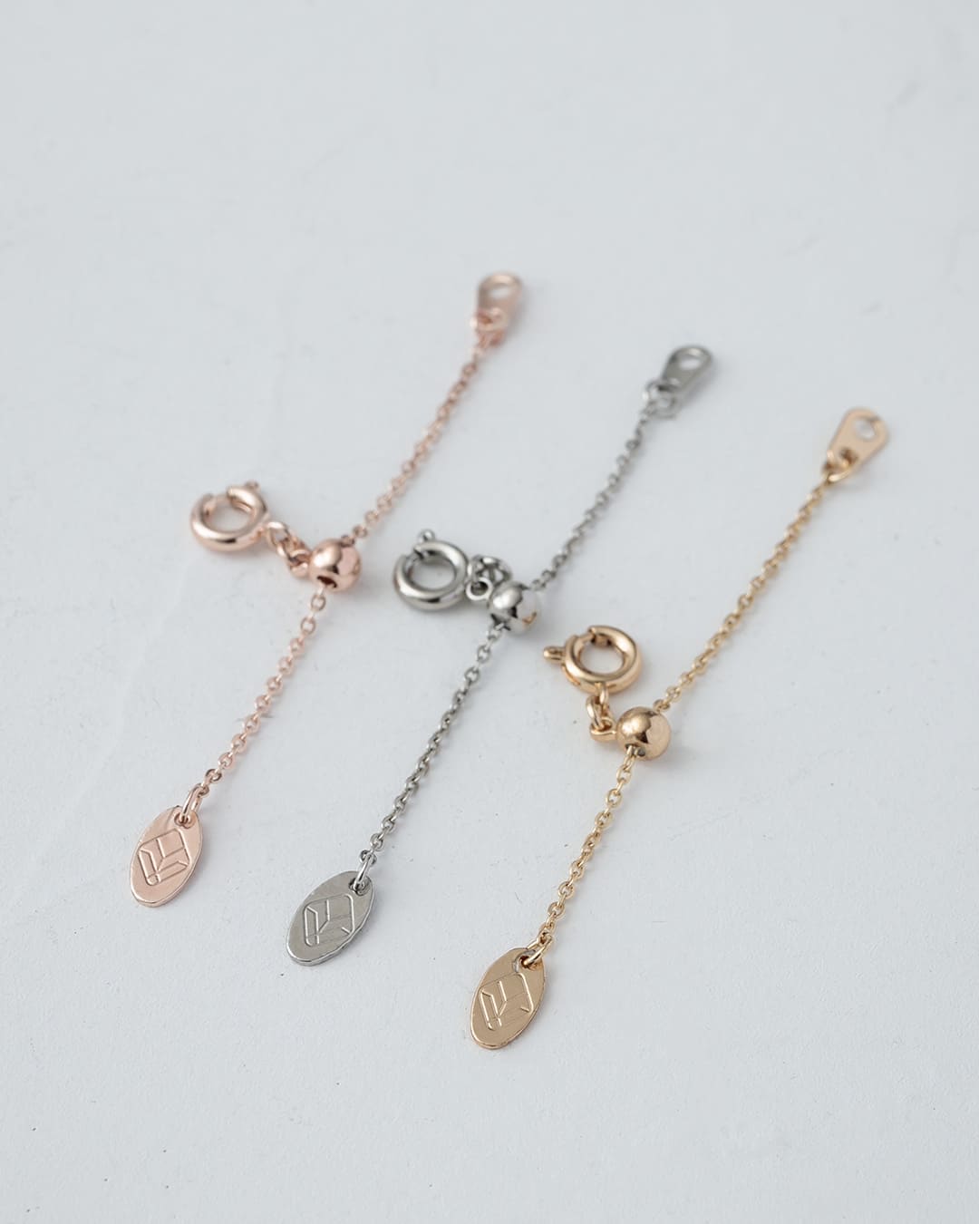 長さ約45cmのネックレスは、40cmのチェーンに加えて約5cmのアジャスターがついており、首元に合わせて調整可能。