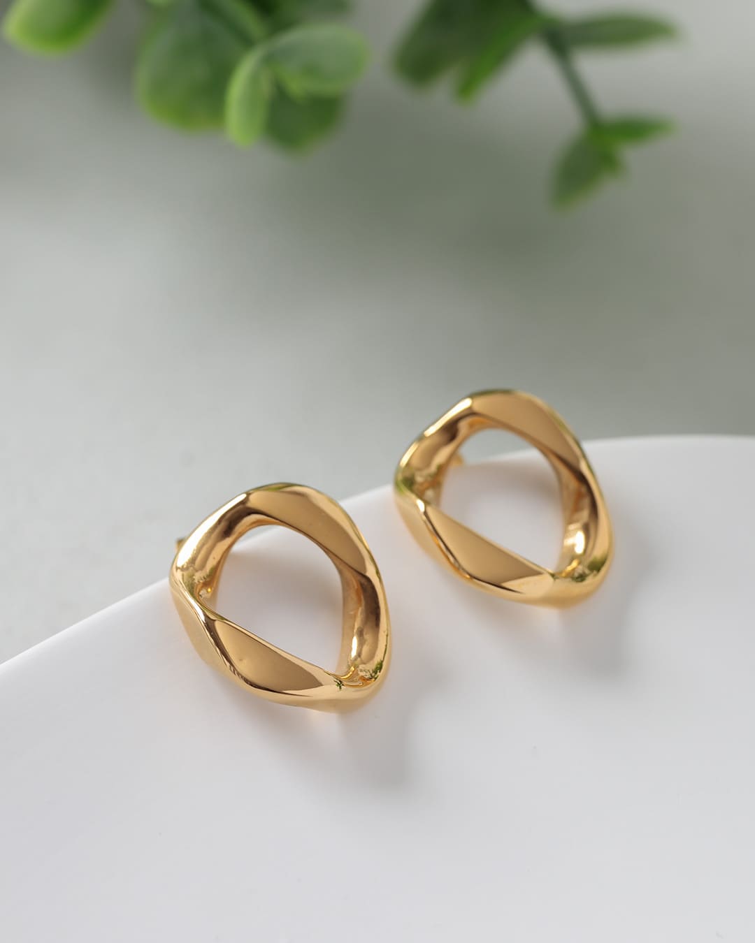捻じれの効いたサークルデザインがカジュアルですが、18Kコーティングの上品な輝きで女性らしさも感じるアイテムです♪