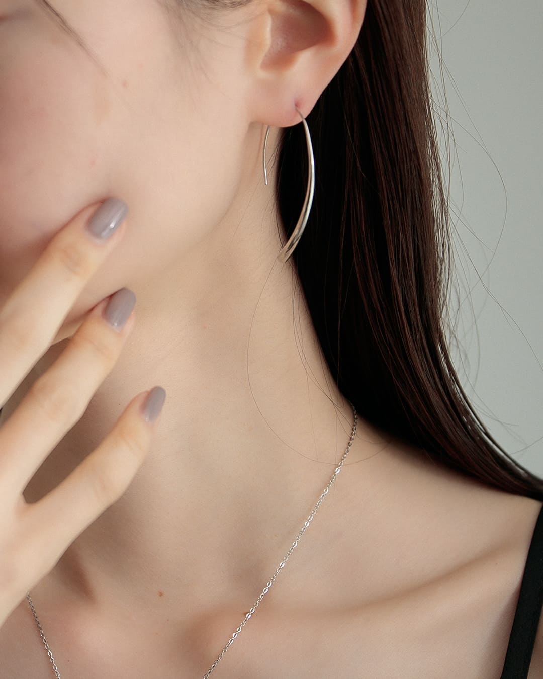 潔く洗練されたフォルムが魅力のフックピアス。強度に優れた素材だからこそ実現できる、シャープな縦ラインの美しさがポイントです。