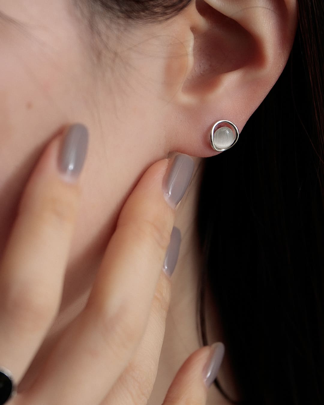 小ぶりなサイズ感ながら、角度によって表情を変える奥行きのある光彩が、耳元で静かに存在感を放ちます。