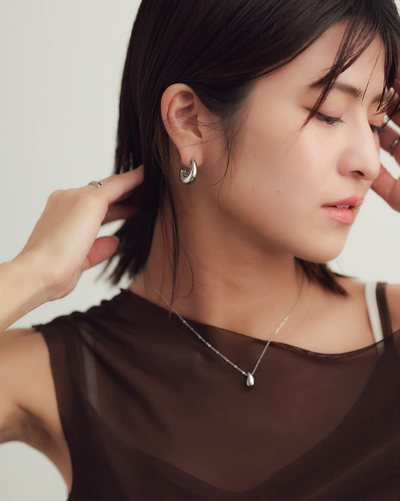 耳たぶにフィットするカーブと艶やかな光沢が、顔まわりをパッと華やかに。