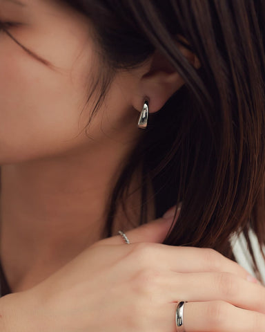 まるでピアス見え!ぷっくりと厚みのあるUラインを描くフォルムが目を引く、存在感たっぷりのイヤリング。