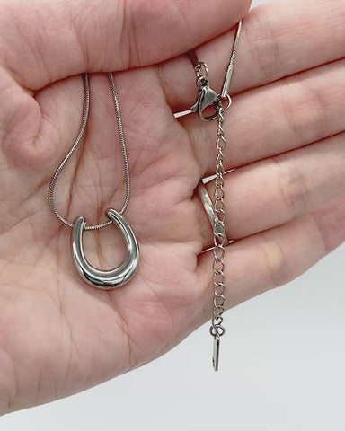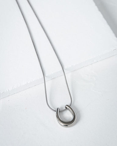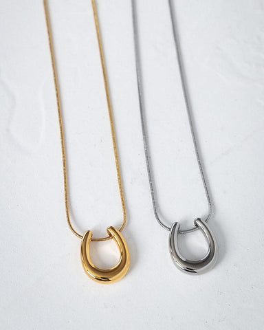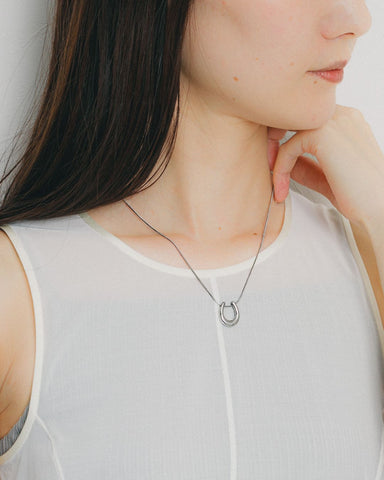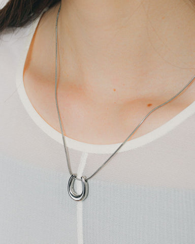 シンプルでありながら存在感のあるデザインが特徴のUモチーフネックレス。