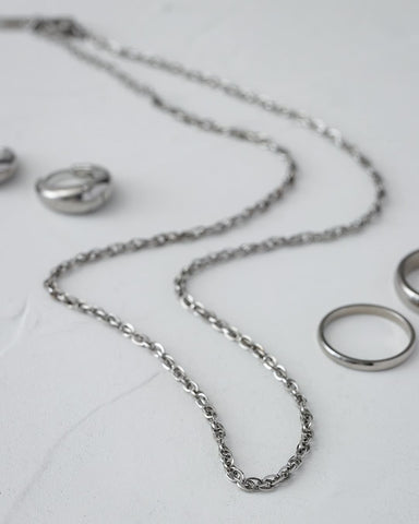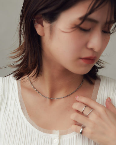 シンプルながら存在感を放つダブルリンクチェーンネックレスは、どんなコーディネートにも合わせやすい万能アイテム。