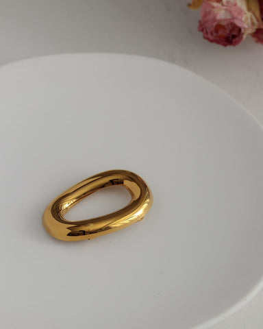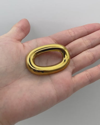 なめらかな曲線で描いたオーバルフォルムが印象的なブローチ。