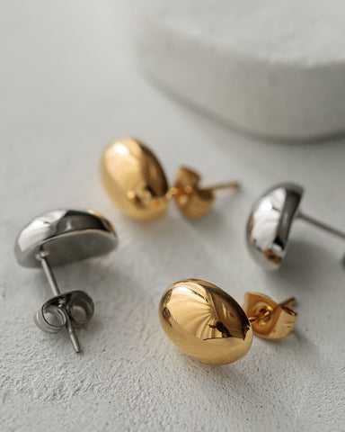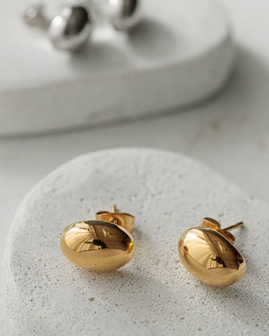 コロンとしたオーバルモチーフのシンプルなピアス。