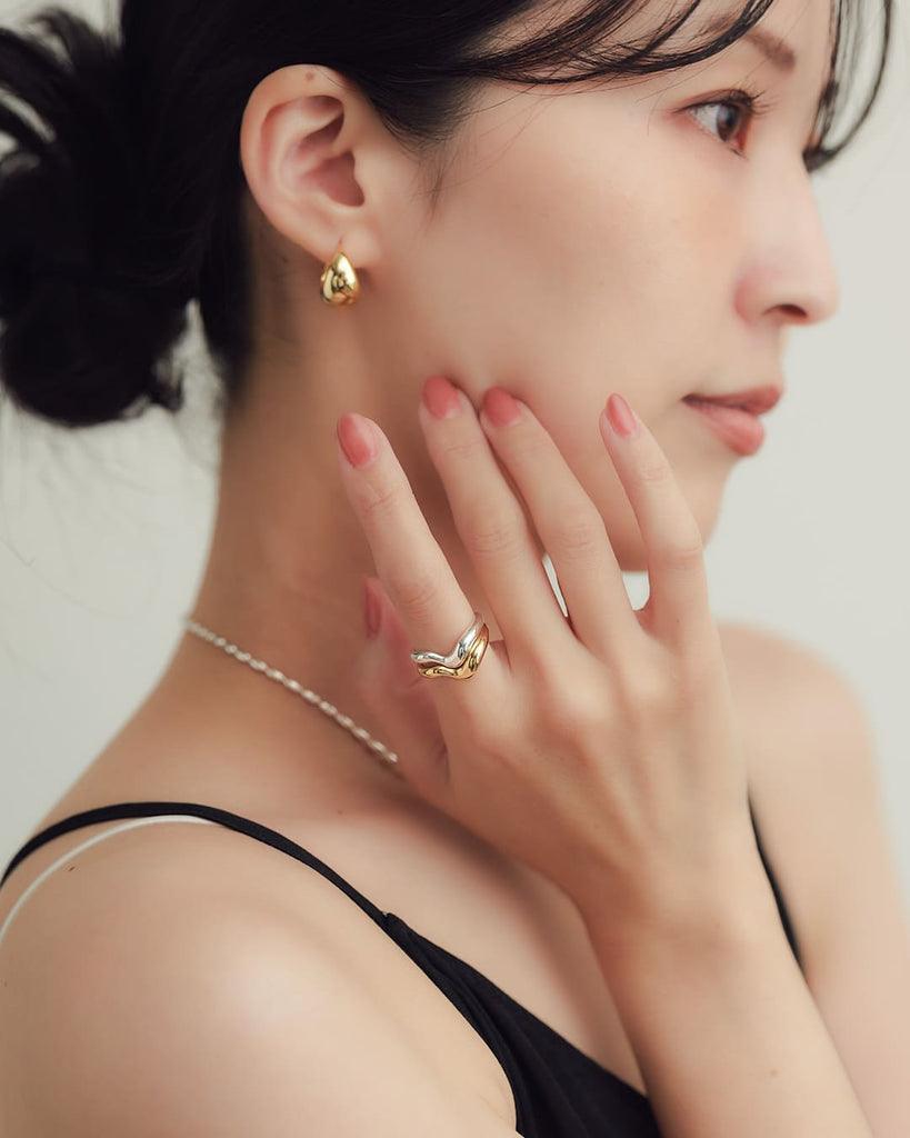 1本ずつでも使用できるウェーブリングを2本重ね、1つのデザインとなる2way仕様のリング。